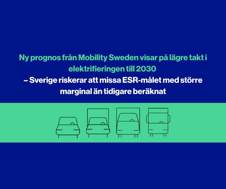 Mobility Swedens nya prognos visar att elektrifieringen av transportsektorn till 2030 är väsentligt lägre än de prognoser myndigheterna antagit, vilket innebär att Sverige missar etappmålet för inrikes transporter och ESR-målet med större marginal än tidigare beräknat. Myndigheternas prognos utgår från att fordonsindustrin når sina individuella CO2 krav beslutade av EU, vilket många tillverkare inte ser ut att klara.